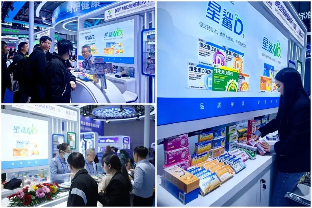 明星产品彰显专业底蕴。星鲨D®维生素D滴剂作为国控星鲨连续多年蝉联国内非处方药产品综合统计排名化学药·维生素类榜首的明星产品,依然是展会现场备受关注的焦点。特别是新上市的针对慢性病人群精准设计的800IU品规维生素D,引发了众多观众的浓厚兴趣。