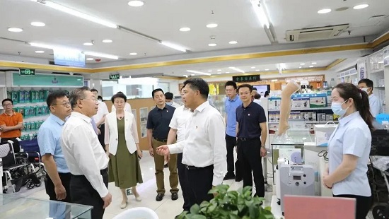 近日,国药集团党委书记、董事长刘敬桢,集团副总经理(主持经营工作)胡建伟,副总经理邓金栋、董增贺、晋斌与辽宁省政府副秘书长孙嘉峰、省国资委主任孟华强等政府领导,共同调研沈阳国大天益堂药房。集团领导一行赴国控沈阳、器械辽宁开展实地调研。按照学习贯彻习近平新时代中国特色社会主义思想主题教育关于开展调查研究的要求,集团领导一行深入基层、深入一线、深入实际,现场具体了解各子企业发展历史、改革历程、经营现状